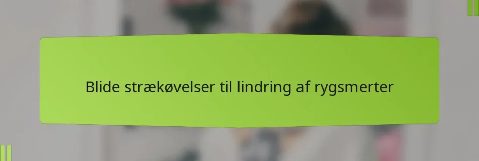 Blide strækøvelser til lindring af rygsmerter er designet til at forbedre fleksibiliteten og lindre spændinger i rygmusklerne. Ved at inkorporere specifikke bevægelser kan disse rutiner betydeligt reducere ubehag og forbedre den samlede mobilitet, hvilket gør dem til en essentiel del af håndteringen af rygsmerter. Key sections in the article: Toggle Hvad er blide strækøvelser til …