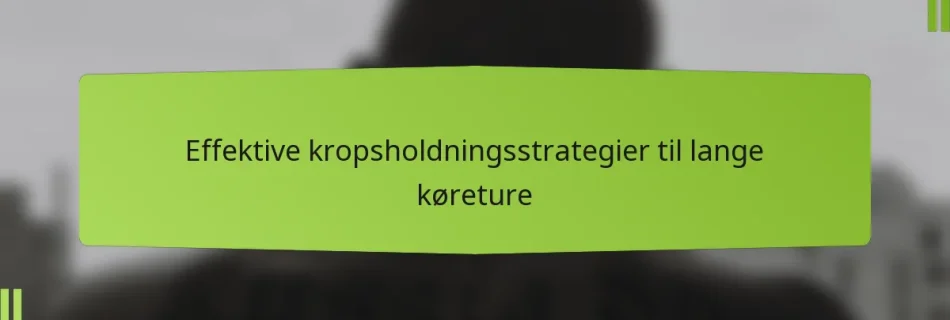 For at lindre rygsmerter, mens du kører, skal du fokusere på at opretholde en god holdning, tage regelmæssige pauser og udføre strækøvelser. Implementering af ergonomiske løsninger, såsom støttende sædehynder, kan også betydeligt forbedre komforten under lange køreture.