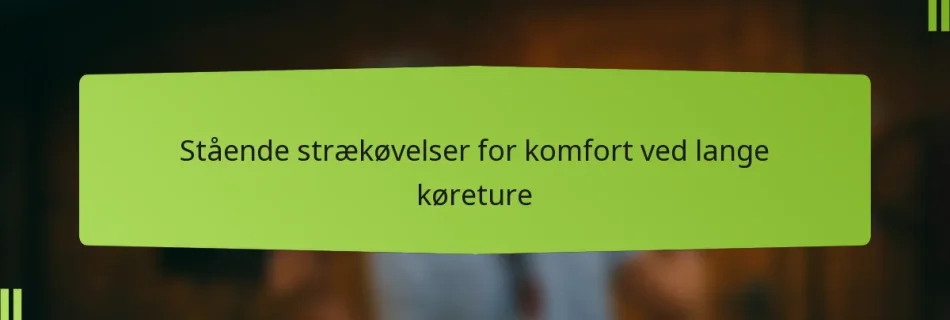 Stående strækøvelser for komfort under lange køreture er essentielle bevægelser, der forbedrer fleksibilitet og lindrer muskelspændinger. Ved at inkorporere disse stræk før og efter kørsel kan du forbedre cirkulationen og forhindre stivhed, hvilket sikrer en mere behagelig rejseoplevelse. Key sections in the article: Toggle Hvad er stående strækøvelser for komfort under lange køreture? Definition og …