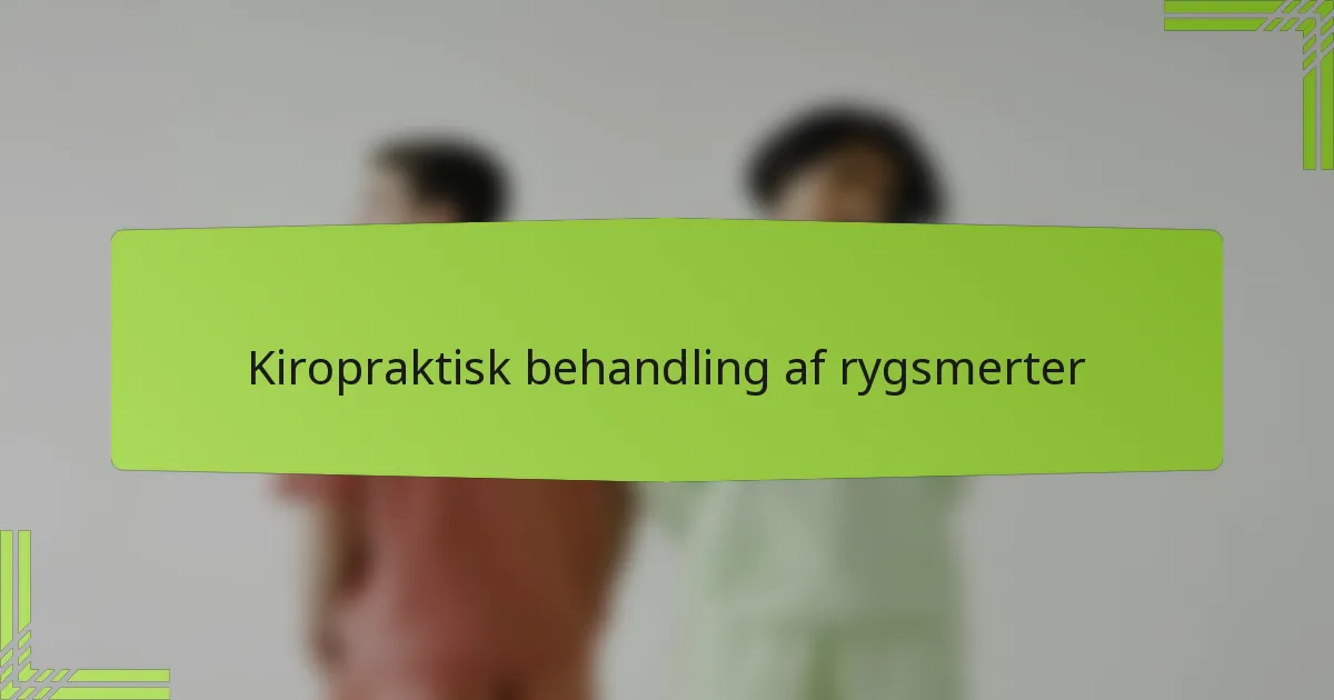 Hvad er kiropaktisk behandling af rygsmerter?