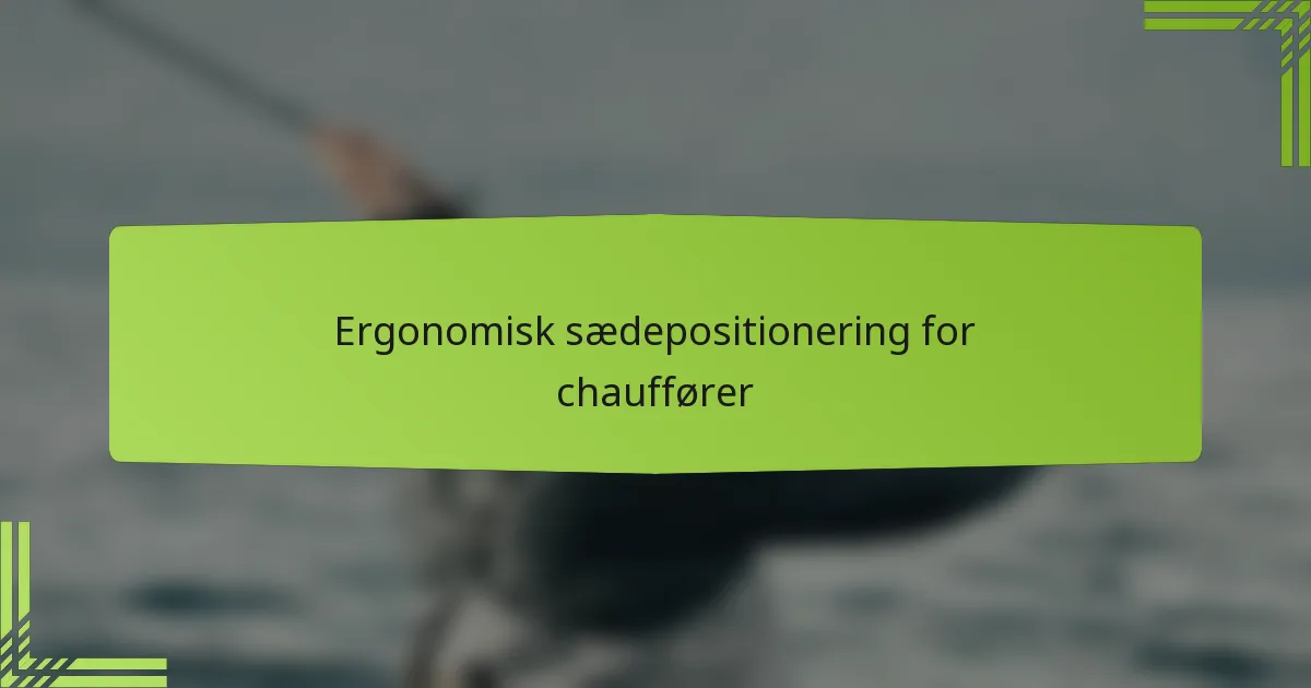 Ergonomisk sædepositionering involverer justering af sædets højde, afstand til pedalerne og ryglænets vinkel, så det passer til førerens kropsmål og kørestil. Denne skræddersyede opsætning sikrer, at føreren kan opretholde en naturlig kropsholdning, mens der er nem adgang til kontrollerne og udsigt til vejen. Nøglejusteringer inkluderer sædedybde, lændestøtte og nakkestøttehøjde.