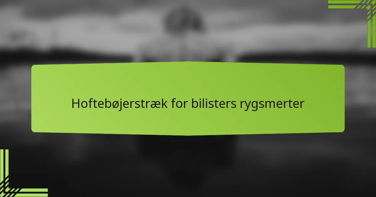 Stramme hoftebøjere er et almindeligt problem for bilister, da de forbliver i en forkortet position, mens de sidder. Denne stramhed kan trække i bækkenet, hvilket fører til en anterior bækkenvinkling, som øger belastningen på den nederste del af ryggen. At tage hånd om stramme hoftebøjere gennem strækøvelser er essentielt for at lindre rygsmerter.