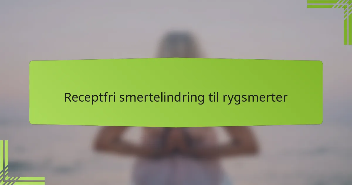Receptfrie (OTC) smertelindrende muligheder, herunder ibuprofen, acetaminophen og naproxen, kan give effektiv lindring for rygsmerter ved at reducere inflammation og ubehag. Det er vigtigt at følge de anbefalede doser og overveje individuelle sundhedsfaktorer for at sikre sikker og effektiv brug. At være opmærksom på potentielle bivirkninger og interaktioner kan yderligere forbedre smertestyringsstrategier.