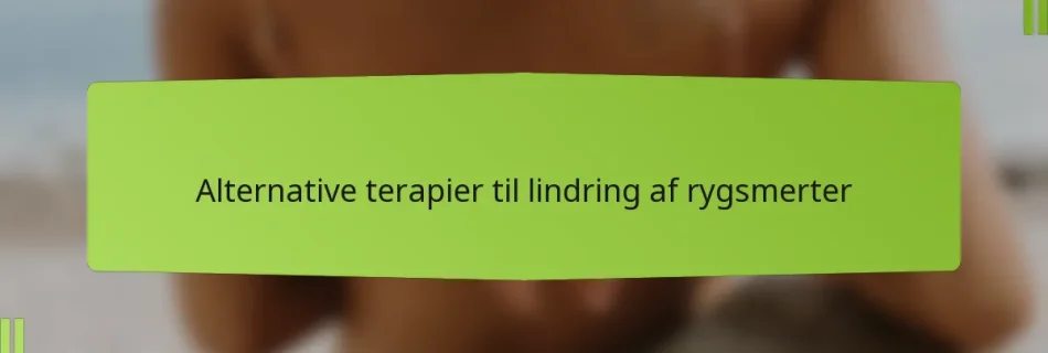 Alternative terapier til lindring af rygsmerter