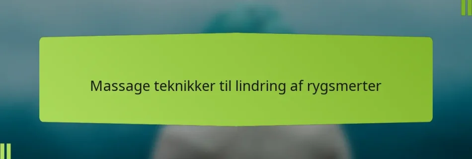 Massage teknikker til lindring af rygsmerter